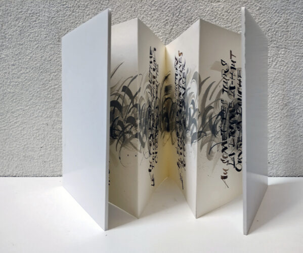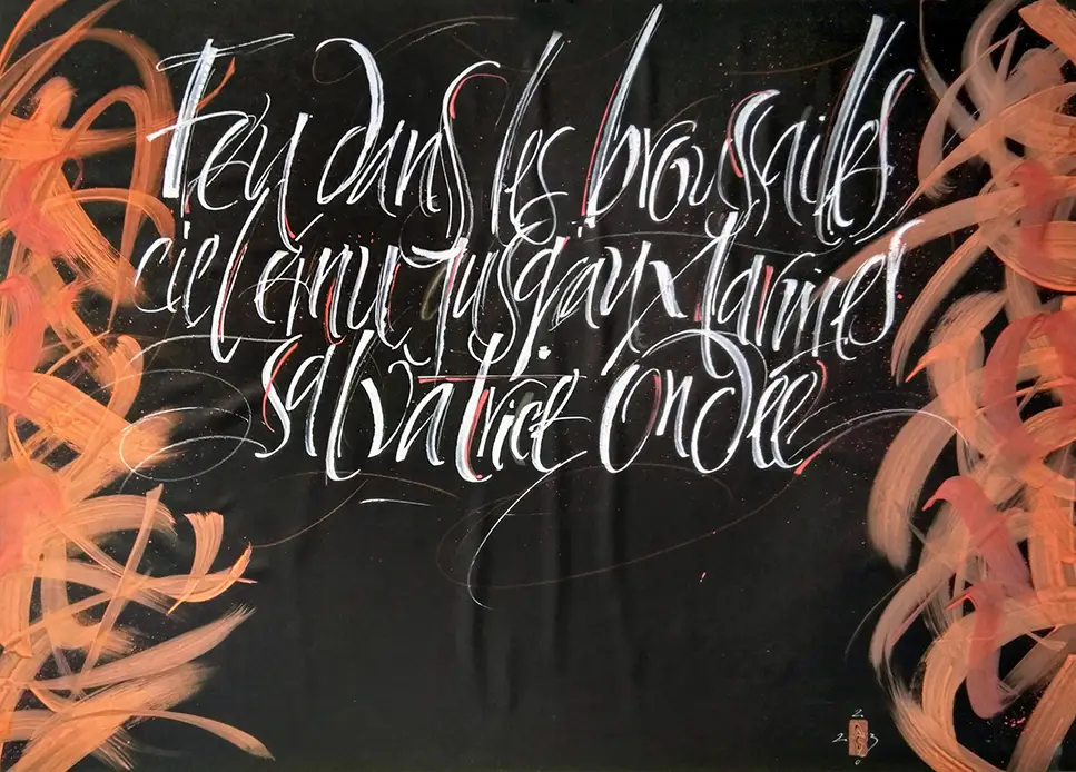 Calligraphy is, for me, both an artistic and a psychological practice. It’s an attempt to transmit or interpret emotional states and texts through written marks. Their expressiveness can range from recognizable letters to abstract graphic signs, detached from legibility.